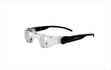 中距离眼镜:是一款轻巧的远用眼镜式助视器,2.0倍、2.1倍不同放大倍率。助视器左右齿轮可供双眼视力不等的低视力者分别调焦,视力较好的低视力患者,使用低倍数的中距离眼镜就可实现轻松看黑板。