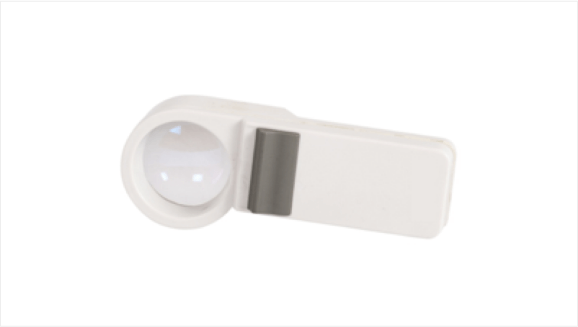 手持式放大镜:有带光源、不带光源两种款式,4倍、6倍、8倍、10倍等多种倍率。医生根据低视力患者自身的视力情况选择合适的倍率。